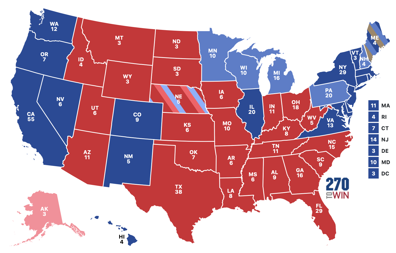 This would mean 279 electoral votes for Biden (maybe slightly less if he loses all the votes from Nebraska and some of the votes from Maine), but still enough to win the election.